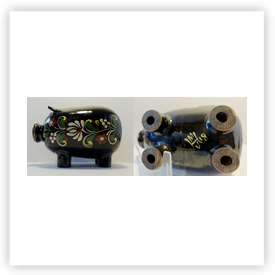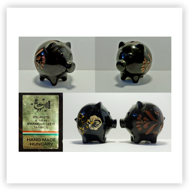 These are so-called HEPP piggy banks (Hole Eyed Pottery Pig). These were created in the Austro-Hungarian Monarchy from 1870 to 1918. The Monarchy (1867-1918) consisted of present-day Austria, Hungary, Bosnia and Herzegovina, Croatia, Czech Republic, Slovakia, Slovenia and parts of neighbouring countries. That explains why Austria is one of these pigs and sometimes Chechoslovakia or variants of both. Or no stamp at all, which does not matter for this type because they are recognizable anyway. They are now antique and come in sizes 16 cm to 9.5 cm.