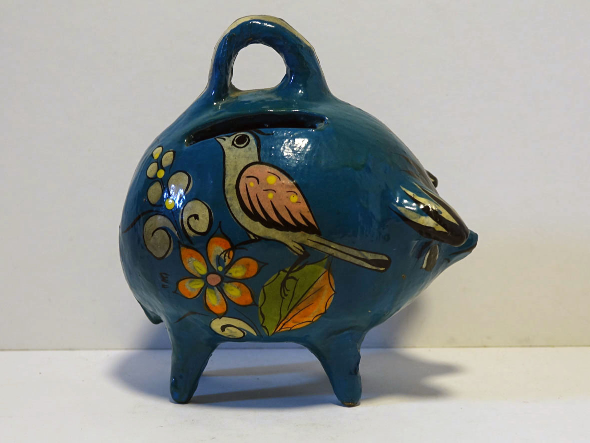 The majority of piggy banks from Mexico stand out because of their bracket and light weight. They may have been made of clay with volcanic ash. Before the great earthquake of 1985, you could regularly buy Mexican piggy banks in the Charity Shops. Not anymore after that.