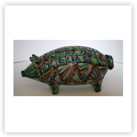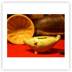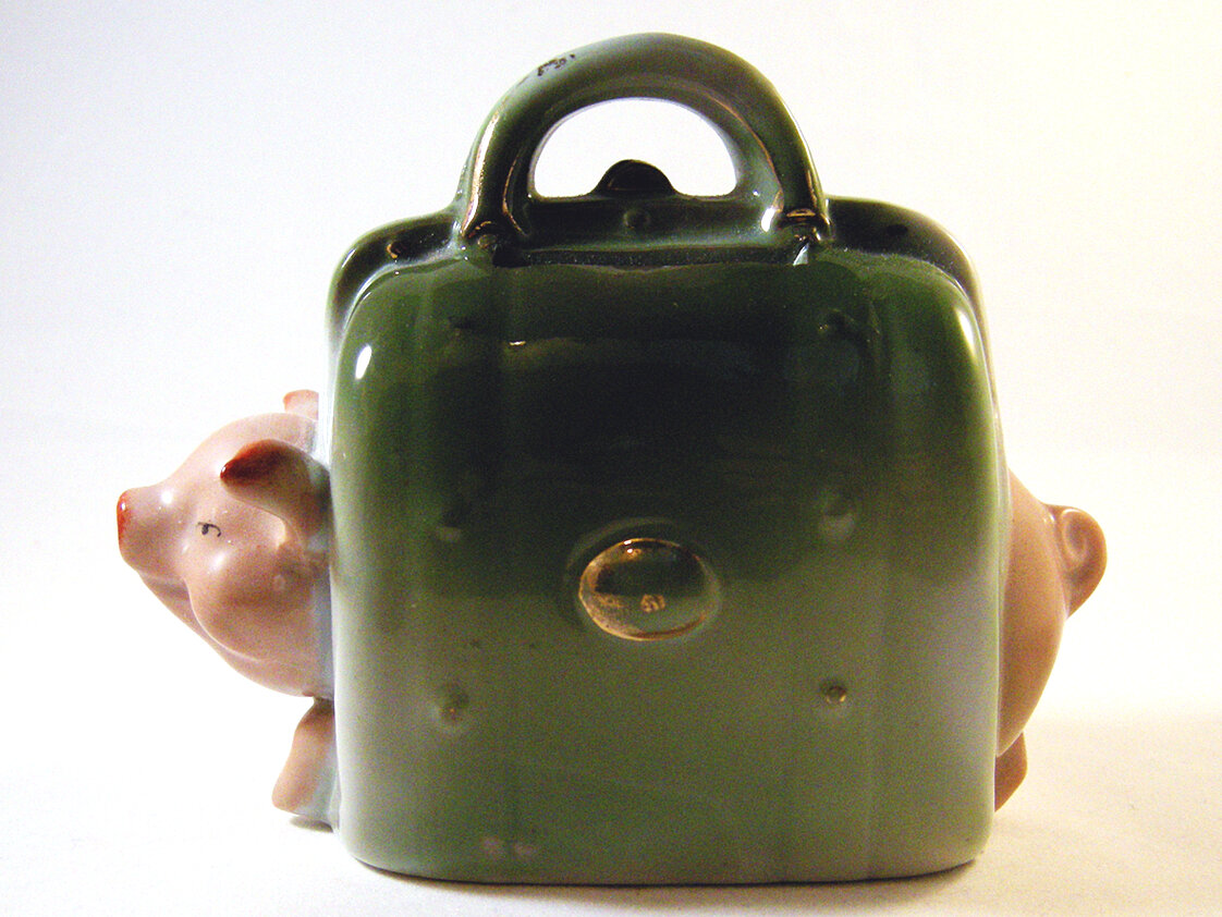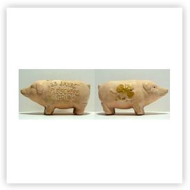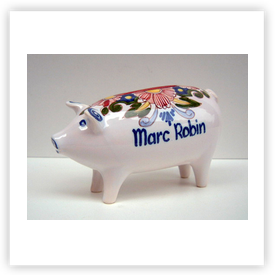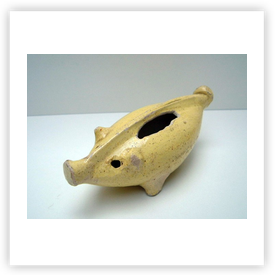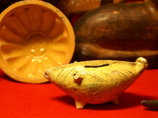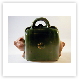 Where ever earthenware or porcelain industry is, or has been, one can find piggy banks. In the Netherlands there are well known places like Gouda, Delft, Makkum. In France Quimper (Brittany), Limoges, Lunéville. In the UK one has to search in Staffordshire. That was the centre of potteries. But get your chance alsoin Scotland, Wales or Soutern England. Or visist the antique shops and antique markets, boot fairs, etc. In Germany one can try to find piggy banks in the Alsace or the former GDR. In Czechoslovakia I found many piggy banks about 20 years ago, nowadays they all are with stoppers! If you are visiting Thailand you can buy piggy banks in Chiang Mai for example. There are opportunities to find them in Mexico, Vietnam, Africa, South America and lots of them in the USA, etc. Where ever you are, visit the local souvenir shop, crockery shop, toy shop, charity shop.