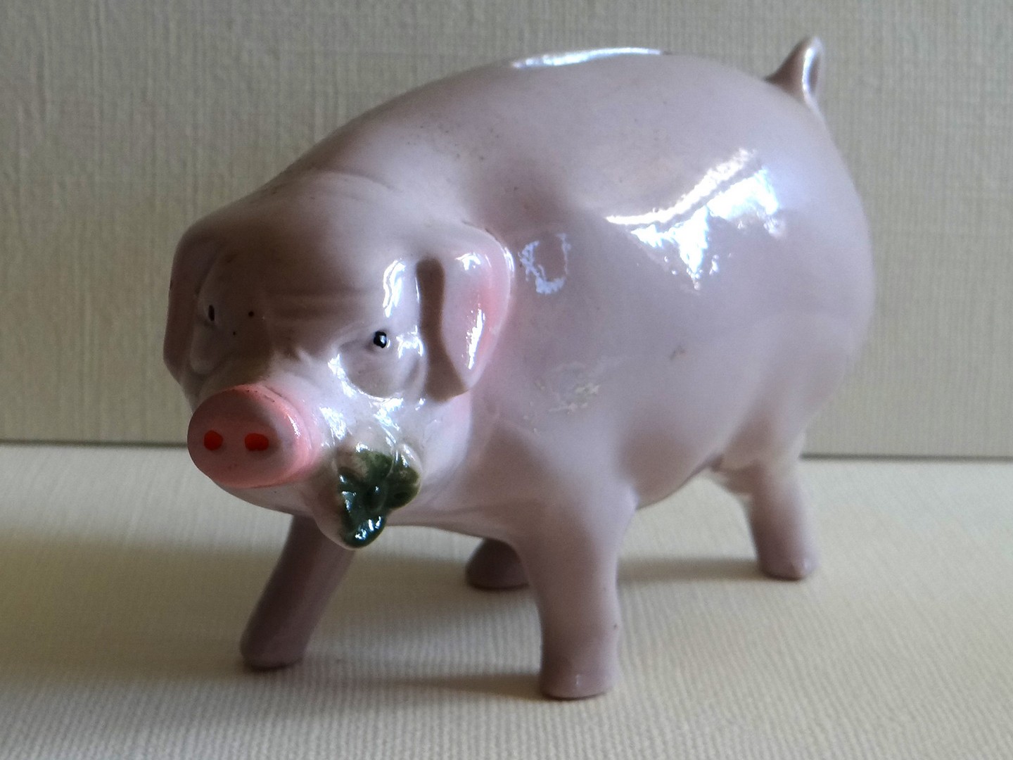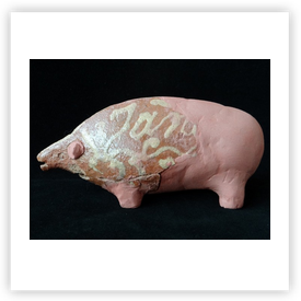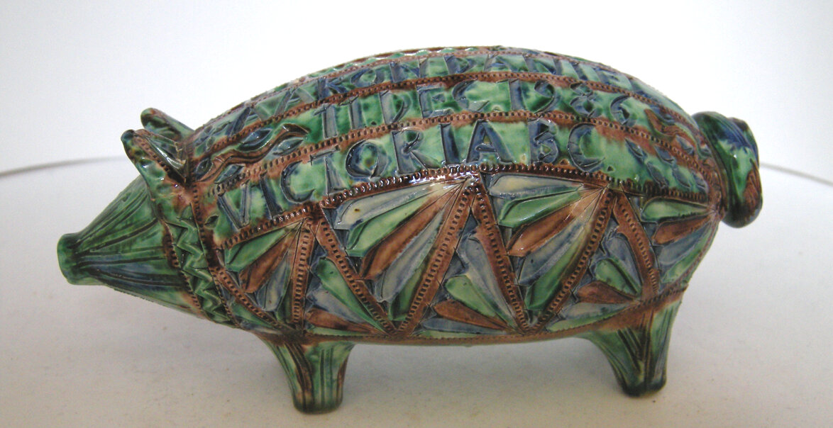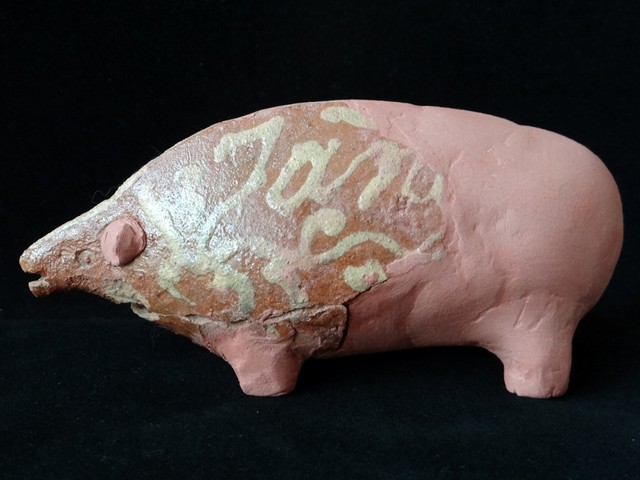 The medieval pig was closer to the wild boar than the modern pig. These also no longer have a comb of bristly hair on the back. The Amersfoort piggy bank (here the replica, in my collection) does have such a pronounced crest on the back. Which also has to do with the production technique (folding/folding edge).